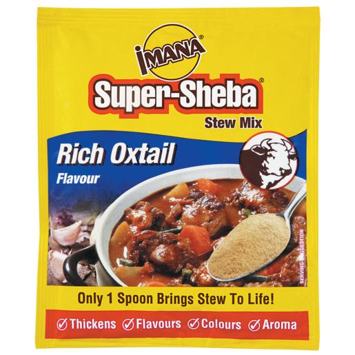 Imana Super-Sheba stew mix thickens and adds flavour, colour and aroma to all savoury dishes. While Imana Super-Sheba is not a packet soup, it is specially formulated to be used as a lot of people use packet soup, as a flavouring and thickener for stews and gravies. It is concentrated, so less is required to achieve the desired effect, and it is contains ingredients that cook instantly.