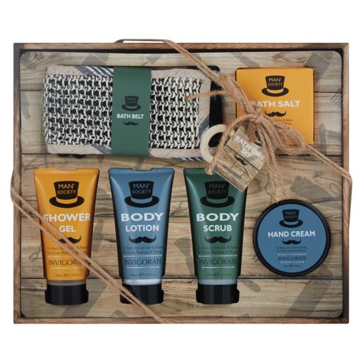 What is the best price for Man Society Bath Set In Wood Box 7 Piece